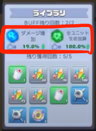 その際に、アイテムだけではなく、リーダーはバフも選択して取得できるので、より良いバフを取っていきます。(下の赤枠部分から欲しいバフがあればタップして、既存の入れ替えるバフを選択する)