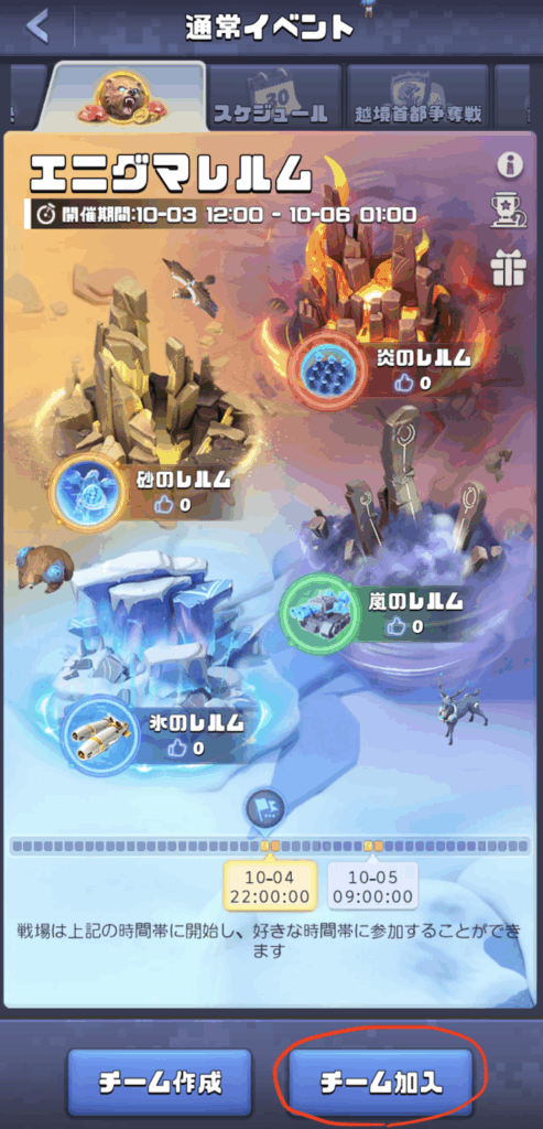 基本的にリーダーをするのは慣れている人の方が良いため、不慣れな方はチーム作成ではなくチーム加入の方でイベントに臨みましょう。