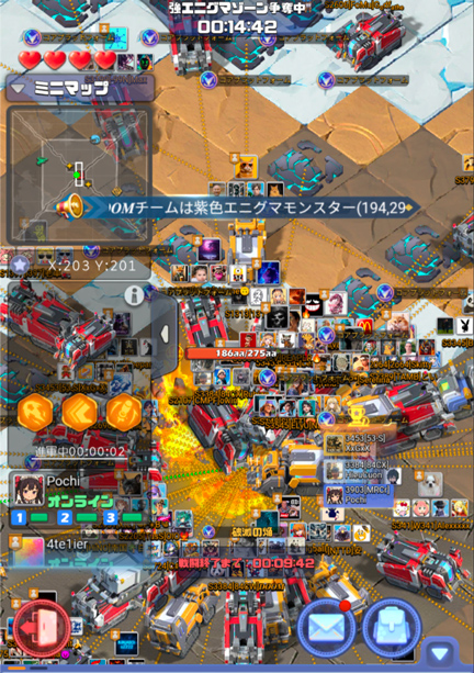 なお、基本的に微課金程度では先行サーバーの人には勝てないので画面が赤くなったら逃げながらアイテム収集することになります。