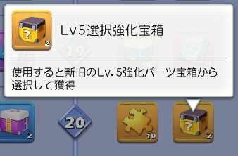 Lv.5選択強化宝箱 は直接部品を選べないので注意しましょう。あくまで新旧の宝箱が選べるだけ。ややこしいから画像も変えて欲しい…。