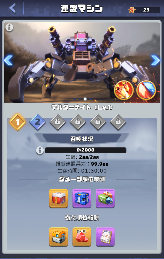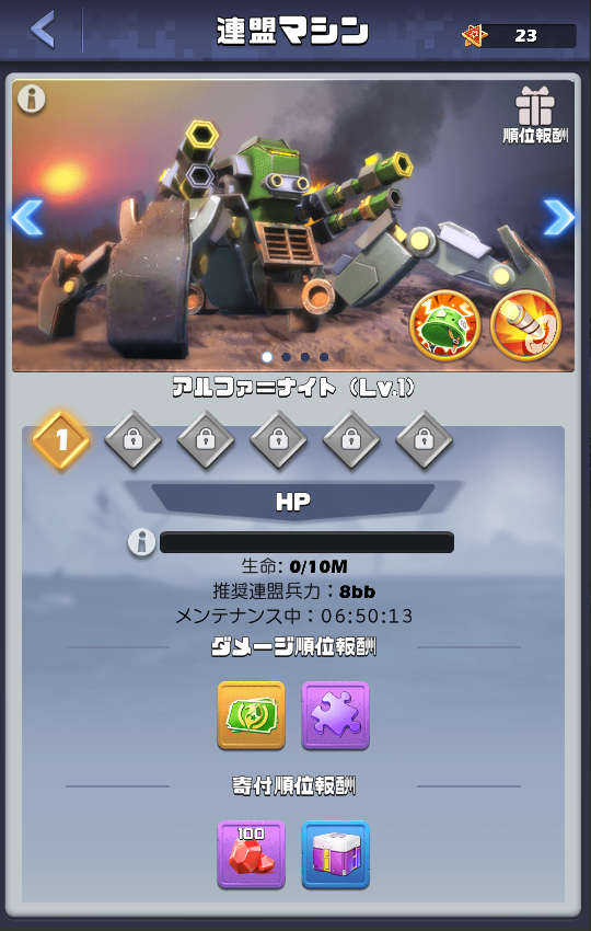 隔週日曜日の無双の峡谷(TC)がない週は、『ガンマ=ナイト』などの普段より寄付数が多く必要な大型マシンを解禁します。