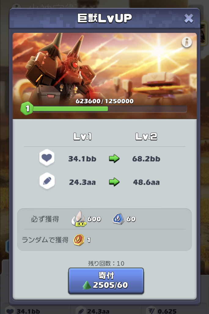 また巨獣天賦が上げられない場合のみ巨獣レベルを寄付して上げてください。