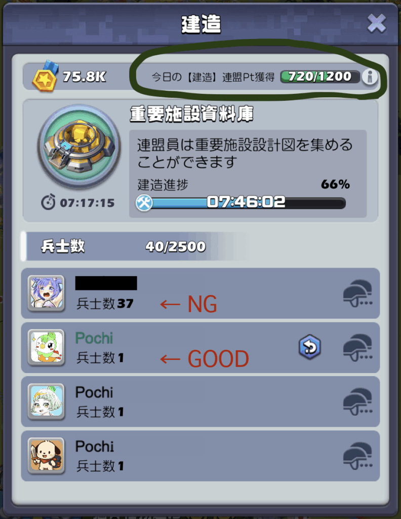 1つでも寄付をすると寄付した人はダイヤがもらえるので、寄付アイテムを使わずに皆が1つずつ無料分の寄付をすることでリソース効率を最大化できます。