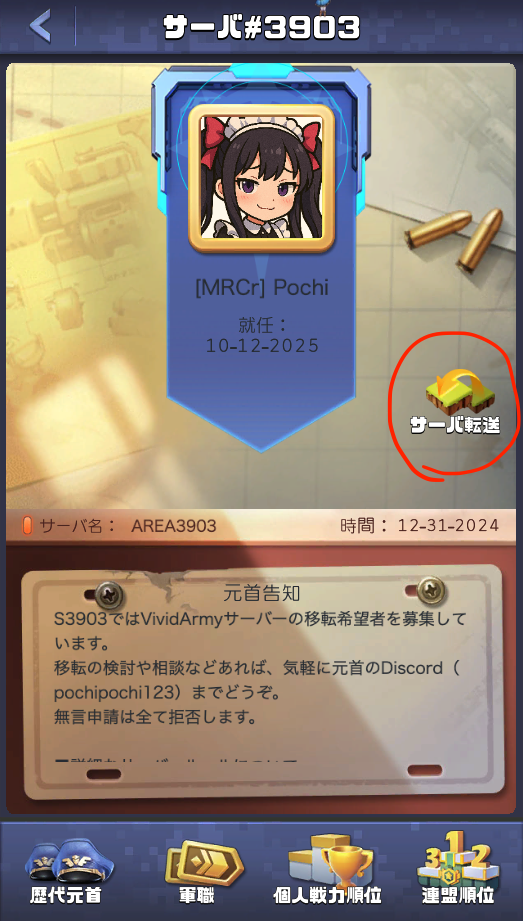 基地戦力はサーバー内のエース以上の方は個別に相談させていただくことになります。